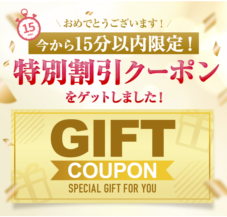 この「特別割引クーポン」の 有効期限は今から分になります!!