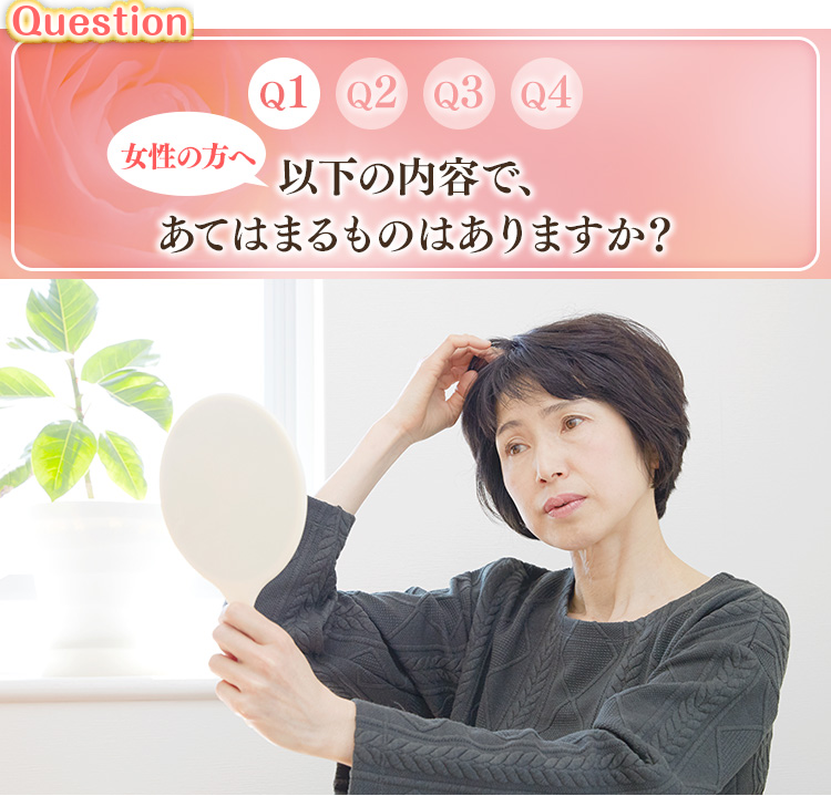 産後の抜け毛や、 更年期世代に増える髪の悩みも 女性ホルモンの変化が原因のひとつ。