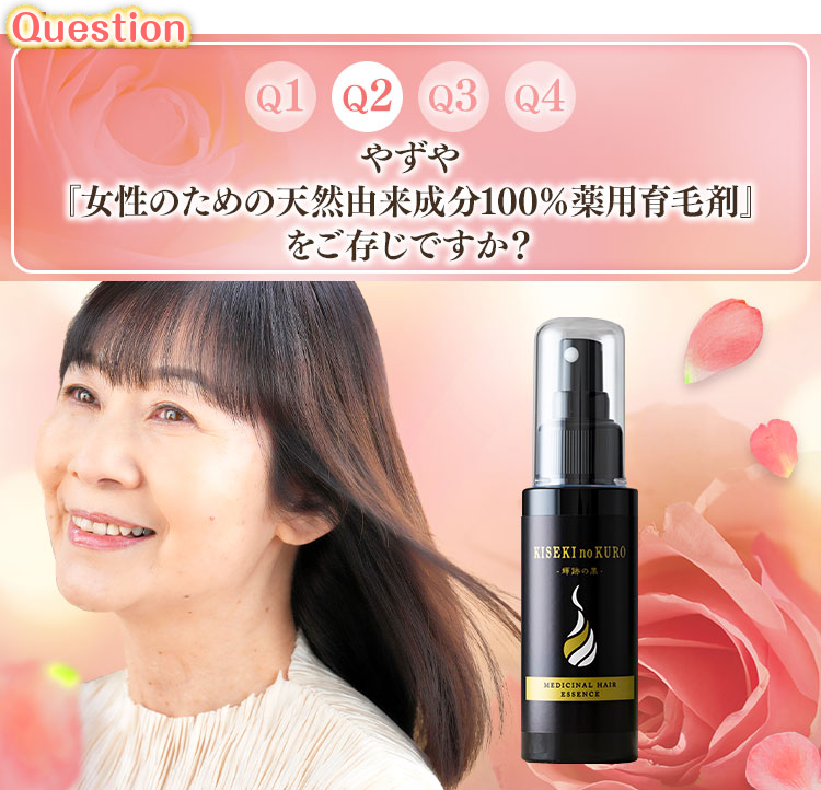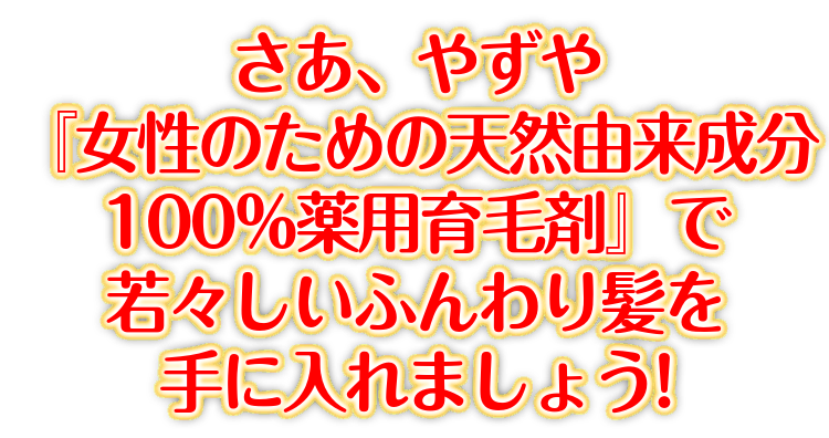 『女性のための天然由来成分 100%薬用育毛剤』で 若々しいふんわり髪を 手に入れて 素晴らしい人生を 送りましょう!