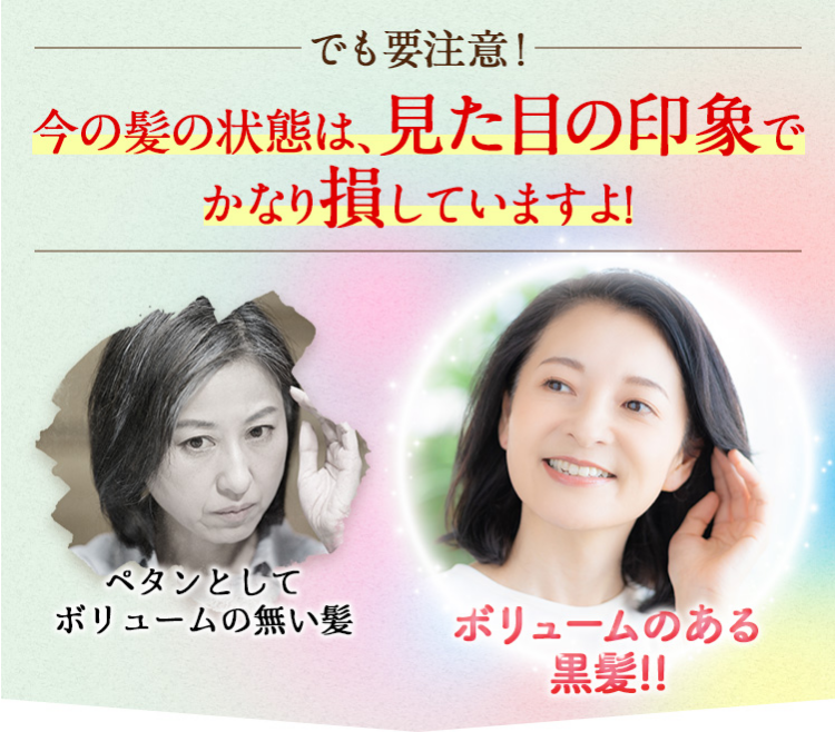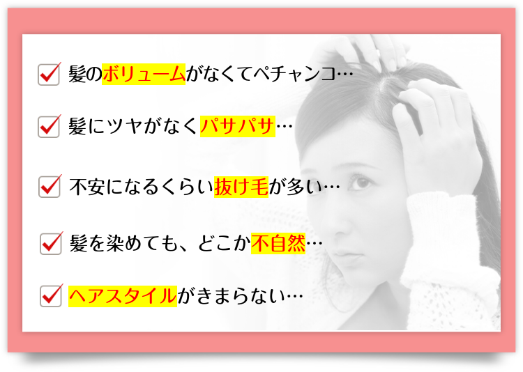 どんなにブラッシングしても ペチャンコで艶がなく、 年齢悩みがどんどん増えていく…。 でも、シャンプーやコンディショナーで 頑張ってヘアケアしても何も変わらない…。
