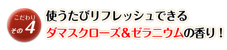 やずや『女性のための天然由来成分100%薬用育毛剤』は、人工香料は一切使用せず、天然のダマスクローズとゼラニウムでさわやかな香りに仕上げています。使うたびにリフレッシュできる香りです。